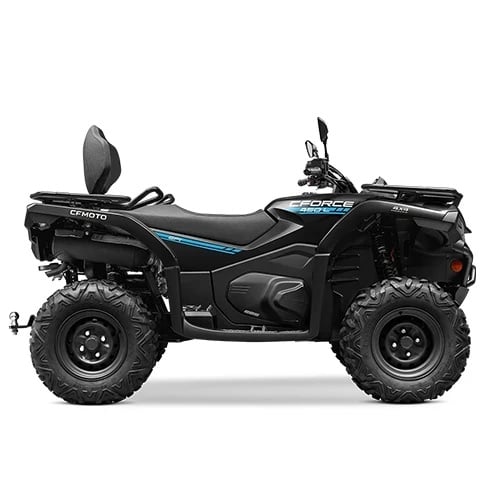 CFMOTO CFORCE X4 450L 2024 este ATV-ul de care ai nevoie pentru activități recreative în aer liber și pentru sarcini utilitare în medii off-road dificile. Pentru sezonul 2024, brandul chinez a adus numeroase îmbunătățiri, iar modelul 450L se remarcă prin specificații tehnice de ultimă generație și un design modern, disponibil în mai multe culori. Manevrabil și stabil, acest ATV CFMOTO este partenerul versatil, pregătit pentru orice provocare pe teren accidentat. Specificații tehnice: Motor: 1 cilindru, 400cc, răcire cu lichid, 4 timpi, SOHC, 4 valve, 31 CP, EFI (Bosch) Cutie: automată CVT, trepte H/L/N/R/P Pornire: electrică Rezervor: 17L Tracțiune: 2WD / 4WD / cu diferențial 4WD Dimensiuni (L x l x H): 2386 x 1125 x 1205 mm Garda la sol: minim 250 mm Suspensie față: independentă, braț dublu tip A arcuit Suspensie spate: independentă, braț dublu tip A Anvelope: 24 inch Amortizor: preîncărcare reglabilă cu șoc de ulei Frâne: disc hidraulic pe roata față + frână de parcare pe puntea centrală Capacitate de încărcare: 240 kg Jante: 12 inch din oțel Culori disponibile: Rocket Red, Lava Orange, Hunter Green, Jet Black Acest vehicul se conduce cu permis de categoria B. Prețul afișat este pentru varianta cu omologare EURO 5 (înmatriculabil la poliție). Culorile portocalie și roșie au un cost suplimentar de 100 Euro (TVA inclus). Puterea menționată este cea declarată de producător și poate varia în funcție de limitările impuse pentru respectarea reglementărilor. Pentru mai multe detalii, consultați sursa. ATV-uri CFMOTO disponibile și în rate!
