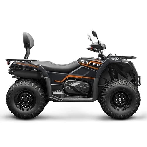 GOES este un grup internațional specializat în designul, dezvoltarea și distribuția de vehicule off-road. Acest brand francez, recunoscut pentru excelența sa, a evoluat de-a lungul anilor devenind un lider mondial pe piața vehiculelor off-road. În ianuarie 2024, Zhejiang CFMOTO Power Co., Ltd (CFMOTO) a anunțat finalizarea achiziției de 100% a GOES. Cu sprijinul acestei companii chineze, GOES va extinde portofoliul de produse pentru a răspunde nevoilor unei baze de clienți mai mari și va optimiza rețelele de distribuție existente. CFMOTO CFORCE GOES 400L este un ATV de ultimă generație, conceput pentru a oferi performanță pe cele mai dificile terenuri. Acesta este partenerul ideal 4x4 cu două locuri, perfect atât pentru agrement, cât și pentru diverse sarcini utilitare, având capacitate de transport de două persoane. Specificații tehnice: Motor: 1 cilindru, 400 cc, răcit cu lichid, 4 timpi, SOHC, 4 valve, EFI Putere maximă: 20.7 kW / 7250 rpm Cuplu maxim: 31.1 Nm / 5500 rpm Pornire: electrică Cutie: automată CVT Tracțiune: selectabilă 2WD/4WD Suspensie față: independentă, braț dublu tip A Suspensie spate: independentă, braț dublu tip A Amortizoare: pe ulei cu arc spiralat Frâne: frână laterală pe roata față, frână axă centrală pe roata spate și frână de parcare Port USB Jante: 12 inch Anvelope: 25 inch Bumpere: față și spate Compartiment spate: pentru depozitarea uneltelor Garda la sol: 250 mm Înălțime șa: 530 mm Capacitate de încărcare maximă: 200 kg Capacitate remorcare cârlig: 300 kg Culori disponibile: Ghost Grey, Pearl Injected Black Acest ATV se conduce cu permis de categoria B. Este omologat T3b (înscriere la primărie). Culoarea Gri este disponibilă pentru un cost suplimentar de 100 Euro (TVA inclus). Puterea menționată este cea declarată de producător și poate varia în funcție de limitările impuse pentru respectarea reglementărilor. Pentru mai multe detalii, consultați sursa. ATV-uri CFMOTO disponibile și în rate.