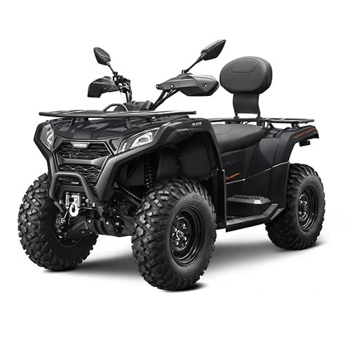 GOES TERROX 500L T3b este un ATV din categoria medie, proiectat să îndeplinească diverse sarcini utilitare și activități recreative. Este echipat cu un motor monocilindru de 495cc, cu 4 timpi, răcit cu lichid, SOHC, cu injecție EFI, care dezvoltă o putere maximă de 35 cai putere, asociat cu o cutie automată CVT. ATV-ul dispune de tracțiune selectabilă 2WD/4WD. Specificații tehnice: Motor: monocilindru, 495 cc, 4 timpi, răcit cu lichid, SOHC, 4 valve, EFI, 35 CP Cutie: CVT Tracțiune: selectabilă 2WD/4WD Suspensie față: independentă, braț dublu tip A Suspensie spate: independentă, braț dublu tip A Frâne: frână laterală pe roata față, frână axă centrală pe roata spate și frână de parcare Amortizoare: față și spate pe ulei, cu arc spiralat Pornire: electrică Viteza maximă: 60 km/h Capacitate de încărcare: 228 kg Rezervor: 14 L Cârlig: 2 inch Port USB Anvelope: 25 inch Bumpere: față și spate Compartiment spate: pentru depozitarea uneltelor Garda la sol: 250 mm Înălțime șa: 530 mm Culori disponibile: Ghost Grey, Pearl Injected Black Culoarea Gri este disponibilă pentru un cost suplimentar de 100 Euro (TVA inclus). Acest ATV se conduce cu permis de categoria B. Este omologat T3 (înscriere la primărie). Puterea menționată este cea declarată de producător și poate varia în funcție de limitările impuse pentru respectarea reglementărilor. Pentru mai multe detalii, consultați sursa. ATV-uri CFMOTO disponibile și în rate.