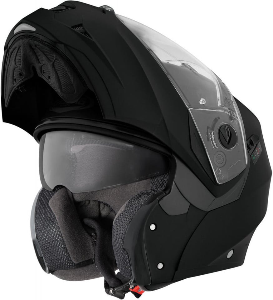 Casca modulara Caberg Duke II Caracteristici: Viziera exteriora rezistenta la zgarieturi PINLOCK inclus Viziera interioara de tip ”ochelari de soare” care asigura 98% protectie UV Partea superioara de protectie pentru barbie poate fi fixata in pozitia-deschis Captuseala interioara detasabila si lavabila Calificativ acordat in baza testarilor facute in pozitia-deschis si pozitia-inchis Pregatire headset BLUETOOTH Inlocuire usoara de viziera, cu un singur buton