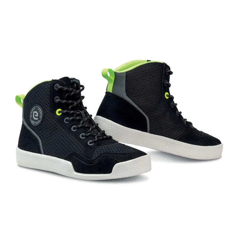 RANFORSĂRI: Protecții integrate la călcâi, vârf și gleznă. Inserție din poliuretan aplicată prin termosudare pentru protecția zonei schimbătorului de viteze și a părții exterioare.