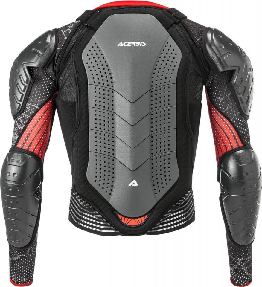 Armura Acerbis Scudo Caracteristici: Material: Polypropylene 29%, EVA 27%, Polyurethane 25%, Polyester 15, altele 4% Banda/ brida elastica pe mijloc care se inchide cu scai Pe umeri are 2 bretele reglabile in fata si in spate Protectia de spate este din material plastifiat si Polyester PE - EN 1621-3 Umerii, lateralele si coatele din memory foarm pentru absorbtia impactului/socului- EN 1621-1/2012 Protectia din spate este certificata EN 1621-1/2014 Manecile sunt din material tip plasa pentru a permite aerului sa circule Armura Acerbis Scudo este fabricata integral din material tip plasa pentru o ventilare completa