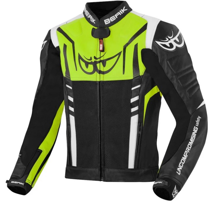 Jachetă de moto din piele Berik Striper Berik Striper nu oferă doar un aspect sportiv, ci și o protecție excelentă datorită protecțiilor de pe umeri și coate. Caracteristici: Piele de vacă premium de 1,1-1,3 mm Țesătură Tense-Tex pe coate pentru flexibilitate și confort Protecții pe umeri și coate conform EN 1621-1:97 Piele dublă la nivelul coatelor și umerilor Fermoar de conectare Conținut: 1 x Jachetă Berik 1 pereche de protecții pentru umeri 1 pereche de protecții pentru coate