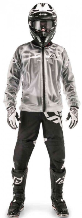 Jacheta moto ploaie Acerbis Pro transparenta Caracteristci: Geaca de ploaie transparenta cu fermoar pe mijloc Insertii de plasa pe laterale in contrast cu geaca Manecile si talia sunt elastice Gulerul este din neopren cu imprimeuri Acerbis 100% clorofibra.