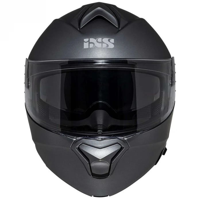 Cască modulară iXS301 1.0 gri mat – cu ochelari de soare integrati Casca iXS301 1.0 este o cască modulară (flip-up) realizată din policarbonat durabil, oferind protecție de încredere și confort optim pentru motocicliști. Este echipată cu vizieră clară, rezistentă la zgârieturi, compatibilă cu Pinlock®, și vizieră solară integrată, acționată din interior. Ventilațiile plasate frontal (la frunte și bărbie) asigură o circulație eficientă a aerului. Căptușeala interioară și pernițele pentru obraji sunt detașabile și lavabile, iar deflectorul de respirație și cel împotriva vântului contribuie la confort în timpul mersului. Casca este prevăzută cu sistem de închidere micrometric (click), canal integrat pentru ochelari în pernițele laterale și respectă noul standard de siguranță ECE 22.06 . Are o greutate de aproximativ 1600g și vine cu o singură mărime de calotă și 3 dimensiuni de EPS pentru potrivire optimă.