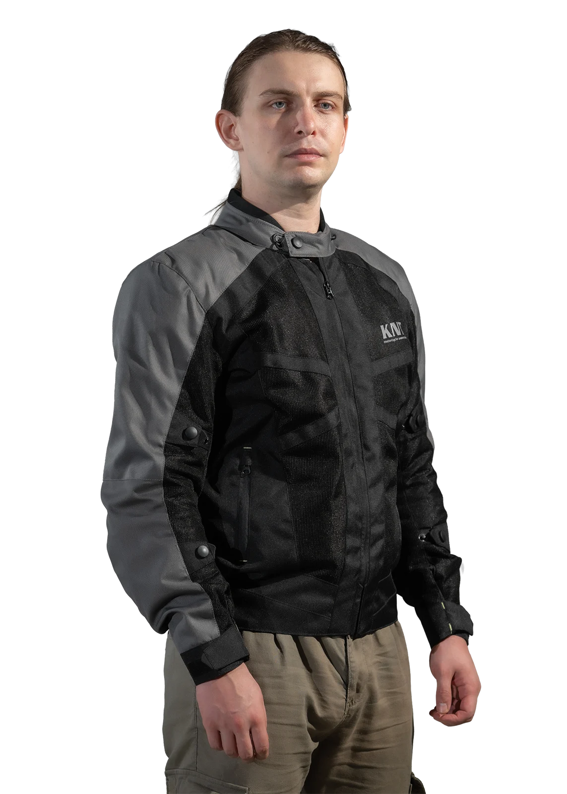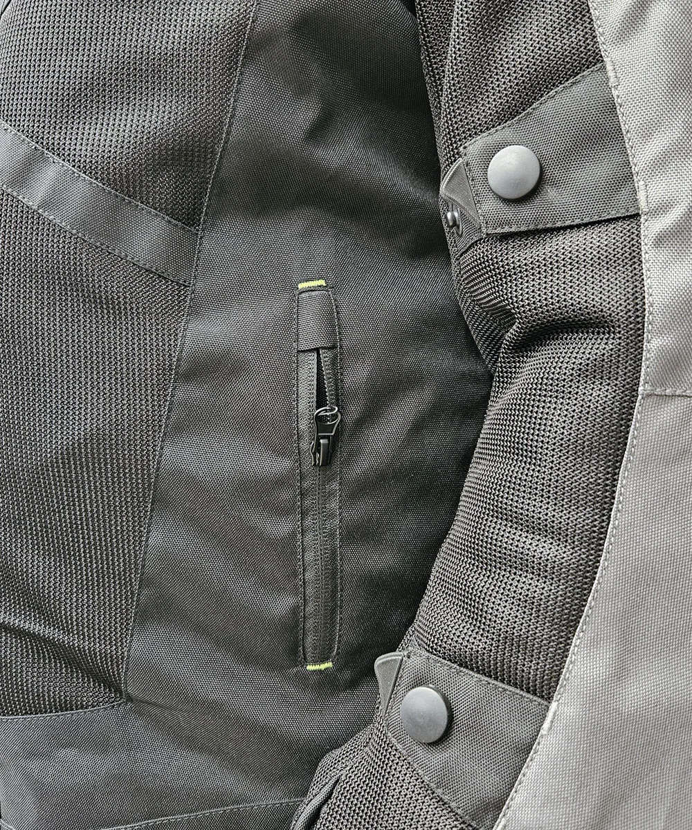 Geaca moto KNT Breeze este partenerul ideal pentru vară; fabricată din plasă dublă, asigură o ventilație excelentă. Include protecții pentru umeri, coate, si spate, un buzunar interior pentru telefon, un buzunar impermeabil pe piept și o membrană impermeabilă detașabilă. Confortul este asigurat de gulerul ajustabil și curelele de reglare de la mâneci și talie.