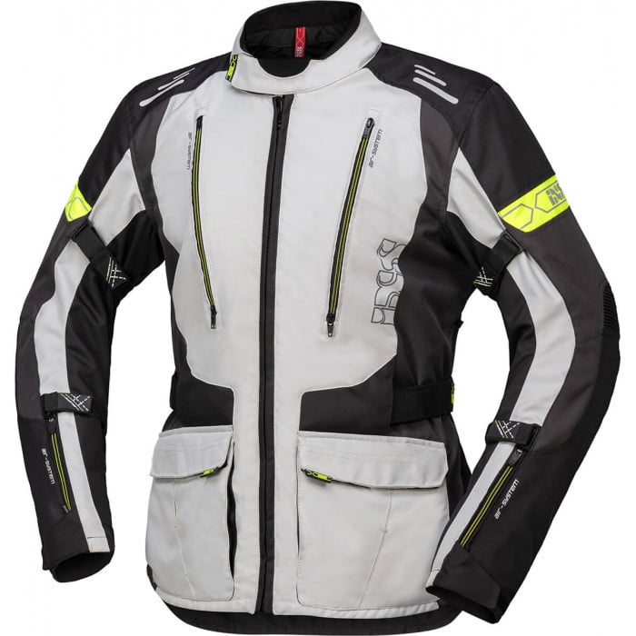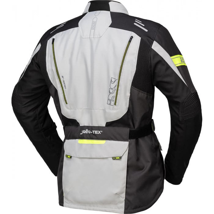 Jacheta moto impermeabila IXS Tour Lorin-ST Caracteristici: Membrana solto-TEX® 2 layer Captuseala aerisita mesh cu bariera de apa climate Captuseala termica detasabila Guler confortabil cu insertii de material fin Mansete confortabile 3 buzunare exterioare 2 buzunare interioare la captuseala mesh si un buzunar tip napoleon 6 deschideri de ventilatie Mansetele cu fermoare cu deschidere bidirectionala pentru ventilatie optima Printuri reflectorizante Fermoar pentru conectare cu pantaloni Protectii la coate ajustabile pe inaltime Jacheta certificate conform EN 17092-4: 2020 (A) Protectiile pentru umeri si coate impacTec ETP-02, certificate conform EN 1621-1:2012, level 1 Buzunar pentru protectie spate (se recomanda impacTec TP-06 (X99514-BCK), certificate conform EN 1621-2:2014, level 2) Material exterior: 100% poliester Captuseala: 100% poliester Suportul membranei: 100% poliester Captuseala termica: 100% poliester Membrana solto-TEX® poliuretan laminat