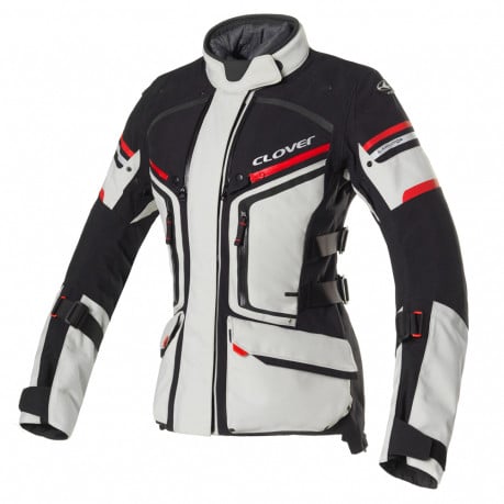 Jacheta moto dama Clover Laminator - 2 Caracteristici: EIP: Echipament individual de protecție Certificare CE: EN 17092-3: 2020 Certificare categoria CE: Nivel "AA". Materiale exterioare: „Duratek-8 Dual-Layer”, „3D-Mesh” Tratament hidrofug pe țesături exterioare Protecții „CE” Nivel 2 pentru umeri și coate „CE” EN1621-1:2012 Omologare de tip Pregătit pentru „CE” Nivelul 1nivelul 2 Elemente refractive laminate pe frunză, lateral și spate Brațe reglabile cu clapete de reglare Antebrațe reglabile cu centură de reglare Talie reglabilă cu centură de reglare dublă Manșetă reglabilă prin velcro Partea inferioară a jachetei reglabilă prin ZIP 2 panouri de ventilatie frontale 1 panou de ventilatie spate 4 buzunare frontale (nr.2 dintre ele 100% impermeabile) 1 buzunar la spate 2 Buzunar lateral impermeabil 1 buzunar interior pe căptușeală interioară 2 buzunare pe termojacheta detasabila Guler exterior din microfibră Conexiune jachetă-pantalon cu ZIP