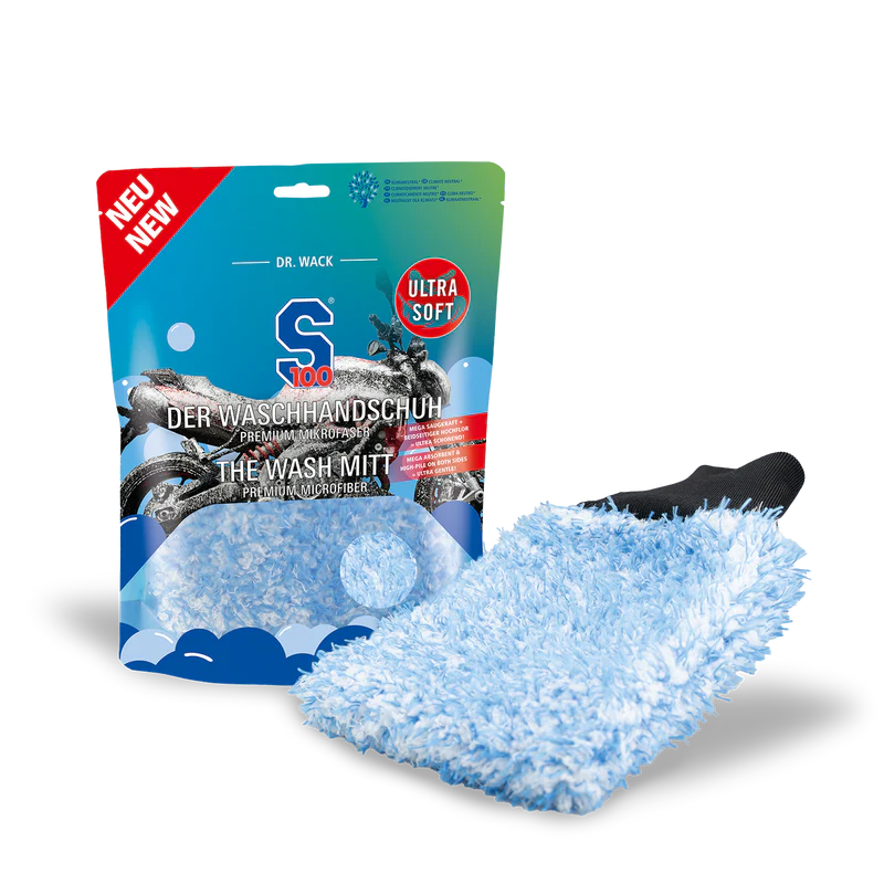 - Curăţare: Curăţaţi motocicleta cu cât mai mult agent de curăţare de sus în jos. Clătiți mănușa în găleata umplută cu apă curată de mai multe ori, astfel încât particulele de murdărie prinse de mănușă să fie îndepărtate. Acest lucru previne zgârieturile