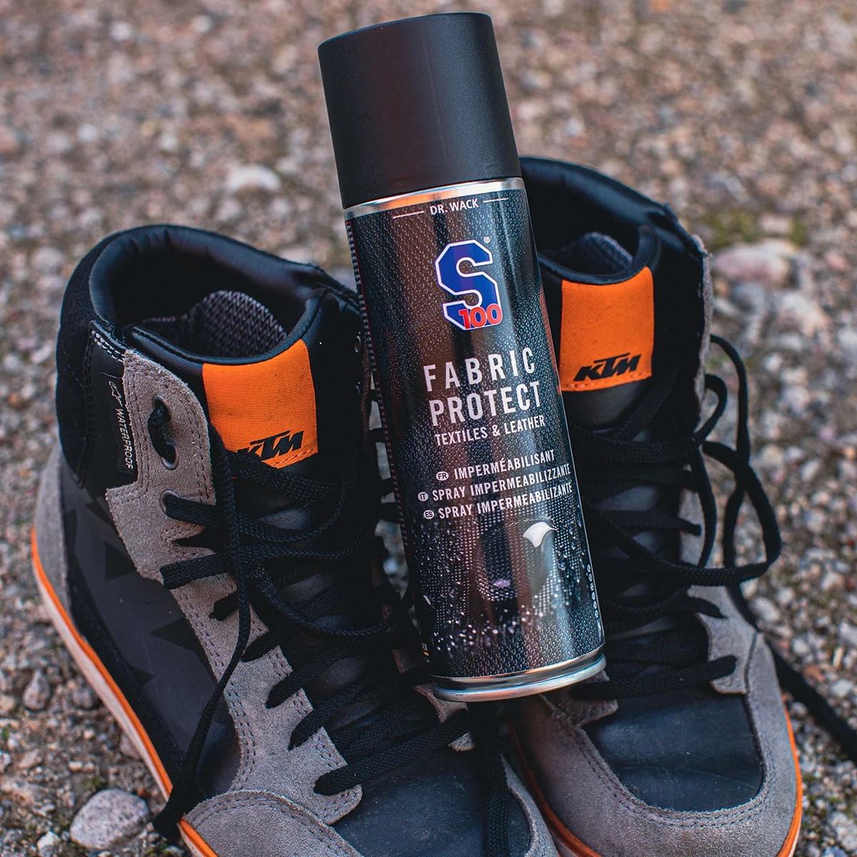 S100 Fabric Protect 300ml este un spray ce ofera protectie excelenta impotriva umezelii, cu o actiune de durata, ce poate fi folosit atat pentru textil, cat si pentru piele, imbracaminte sau incaltaminte cu sau fara membrane climatice.