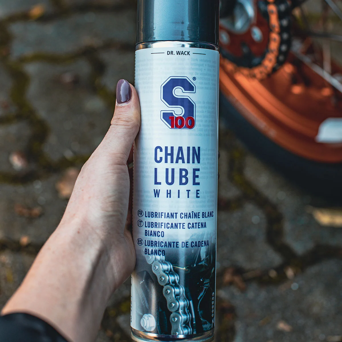Agitati recipientul inainte de utilizare. Pulverizati produsul uniform si usor pe interiorul lantului uscat si curat. Se lasa sa se usuce cel putin o ora, ideal peste noapte. Dupa max. 1.000 km, ungeti din nou lantul, iar dupa max. trei cicluri de lubrifiere curatati lantul cu S100 Chain Cleaner.