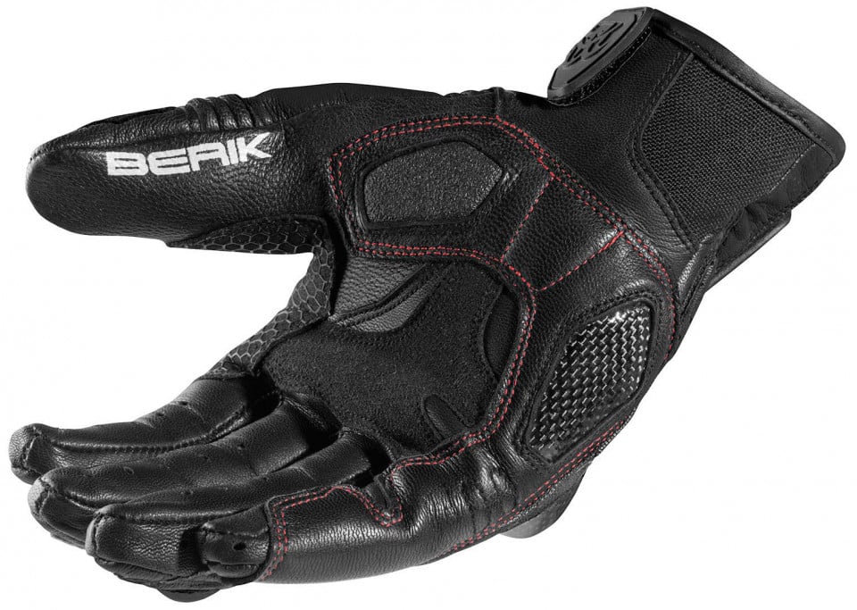 Manusi moto piele Berik Namib Caracteristici: Piele de capră 0,6-0,8 mm grosime Protecție la articulații din carbon dur Protectie pe degete si incheietura mainii Material Clarino pe palmă pentru anti-abraziune și aderență suplimentară Plastic dur prelucrat pe palma Mansete cu Velcro
