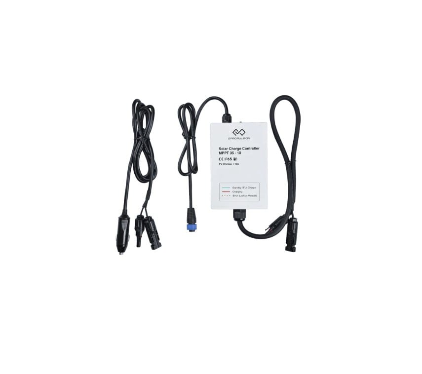 Controler de incarcare pentru panou solar Spirit. Caracteristici : O fisa suplimentara de incarcare de 12 volti este de asemenea inclusa in pachet. Bateria motorului E-propulsion Spirit 1.0 sau Plus poate fi incarcata si cu acest controler de incarcare in timpul functionarii.