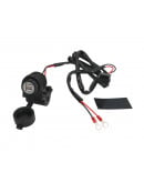 Priza ghidon motocicleta cu USB dubla Caracteristici: Încărcător USB cu două porturi rezistente la intemperii pentru montare pe motociclete, ATV-uri, motoare de zăpadă, bărci, rulote etc. (12V) Permite încărcarea prin cablul de încărcare USB tip A (nu este inclus) Ieșire 2 Amperi Capacul rezistent la intemperii menține interiorul uscat, insa unitatea nu este protejată sau proiectată pentru a fi utilizată în timp ce plouă Proiectat pentru montare pe ghidon de până la 25 mm, dar poate fi montat și pe tija oglinzii folosind adaptoarele unice furnizate Poate fi montat pe panou dacă este necesar, prin îndepărtarea suportului exterior Cablul de 1,2 m, care este echipat cu o siguranță de 10 amperi